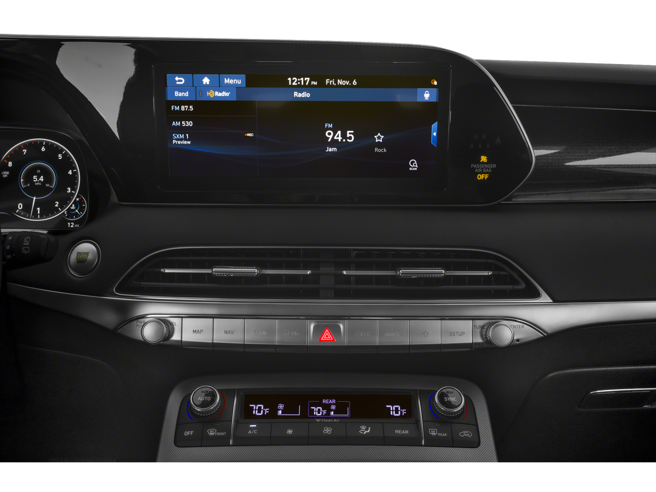 - Radio: AM/FM/MP3 Premium Audio System -inc: 10.25" display screen, Apple CarPlay and Android Auto, Bluetooth® hands-free w/wireless audio streaming, steering wheel audio and phone controls, dual front USB ports, SiriusXM, HD Radio, Blue Link connected car system, 12 speakers including subwoofer, external amplifier, Clari-Fi music restoration technology, QuantumLogic surround, navigation system, rear seat quiet mode and driver talk in-car intercom
